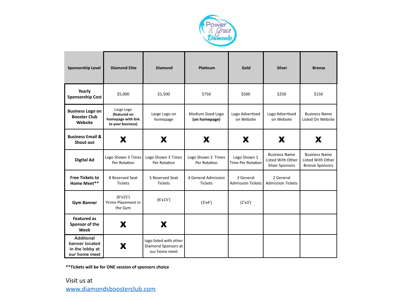 - Large logo featured on Diamonds Booster Club website homepage with a link to you business.